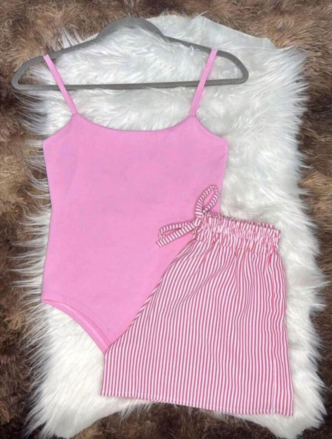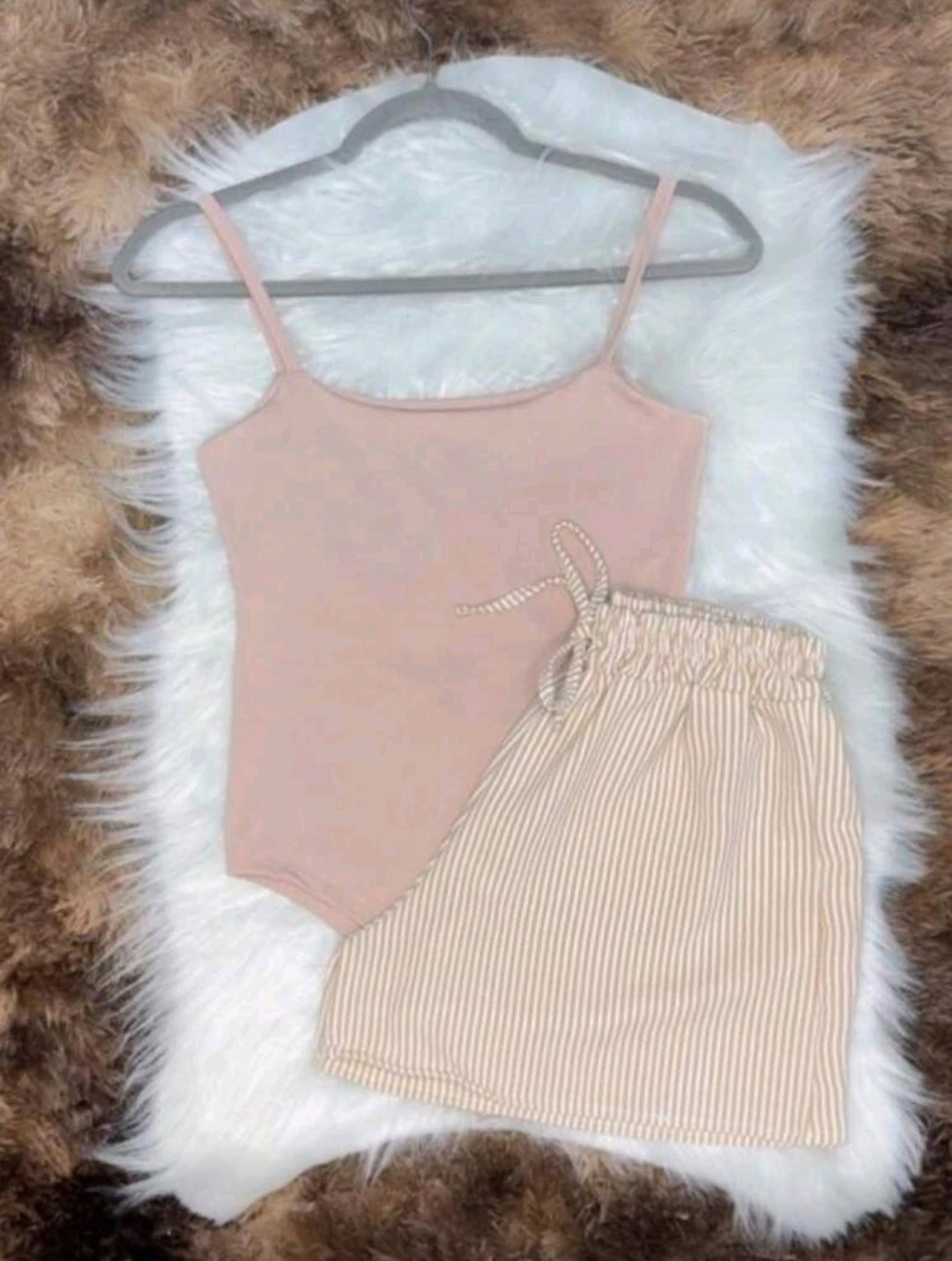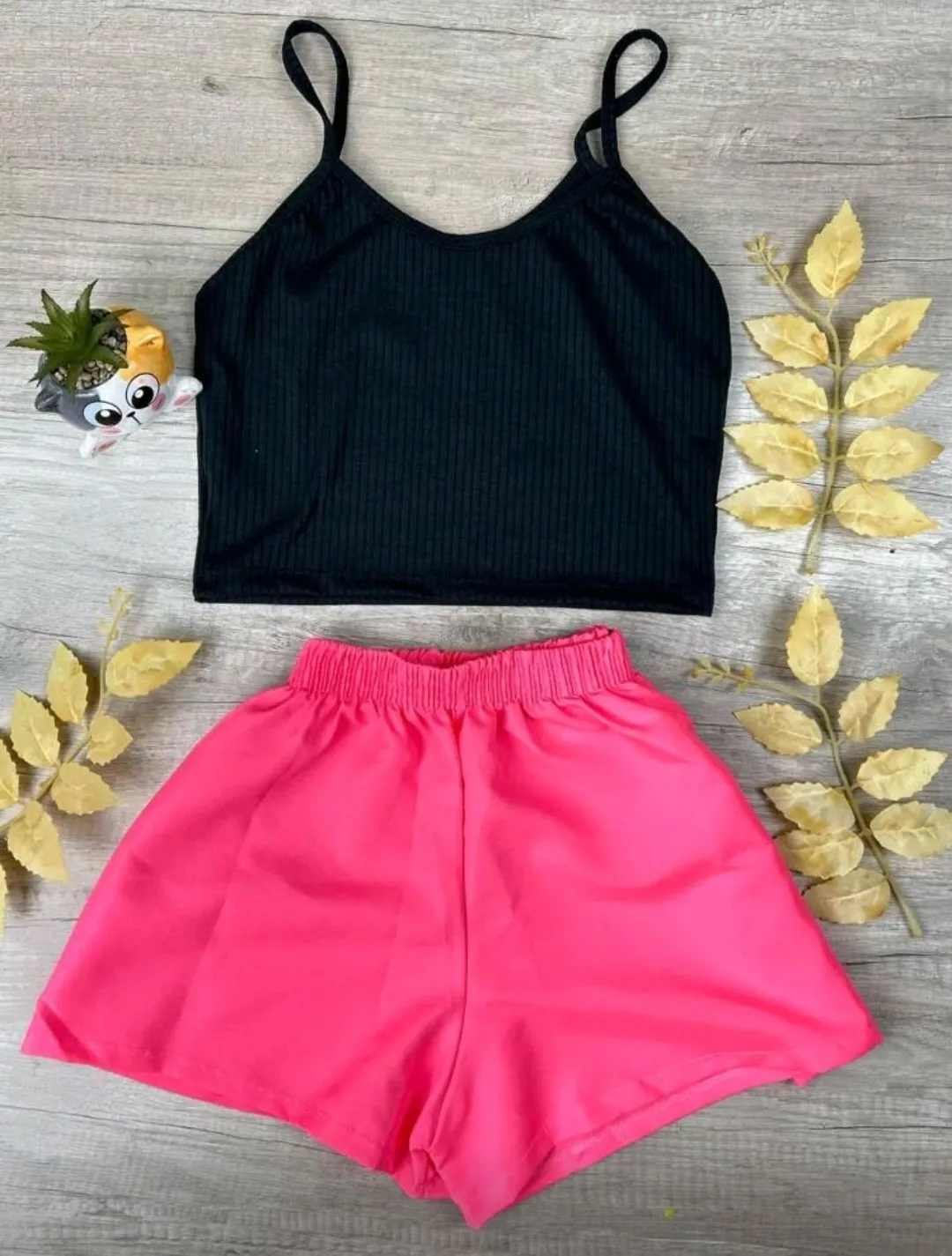 CONJUNTO 2 PEÇAS SHORT E CROPPED LISTRADO DUNA MODA THEND FASHION VERÃO