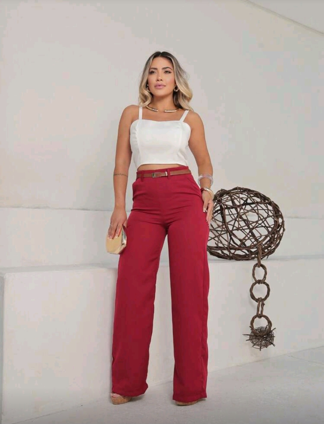 Calça Pantalona Casual Com cinto