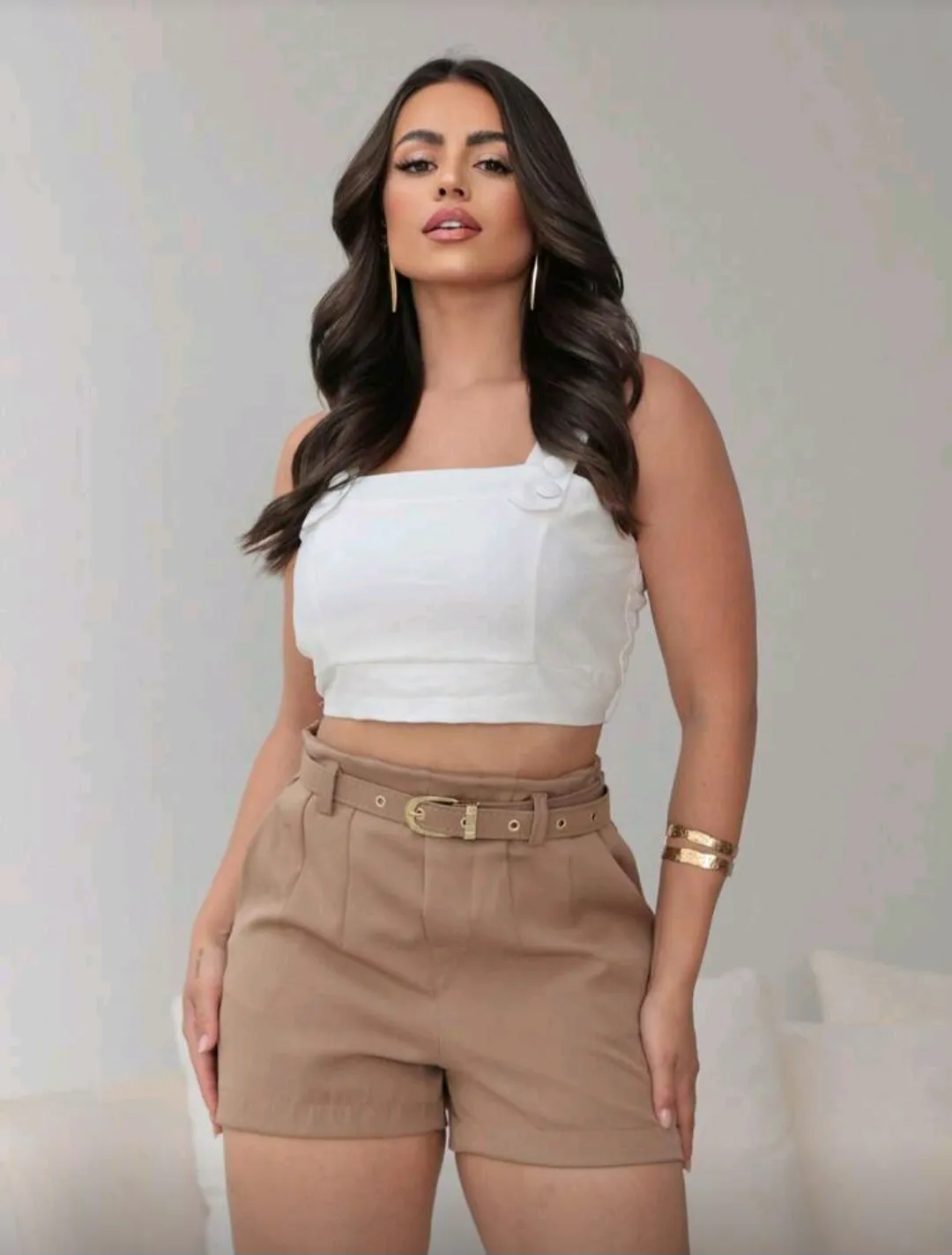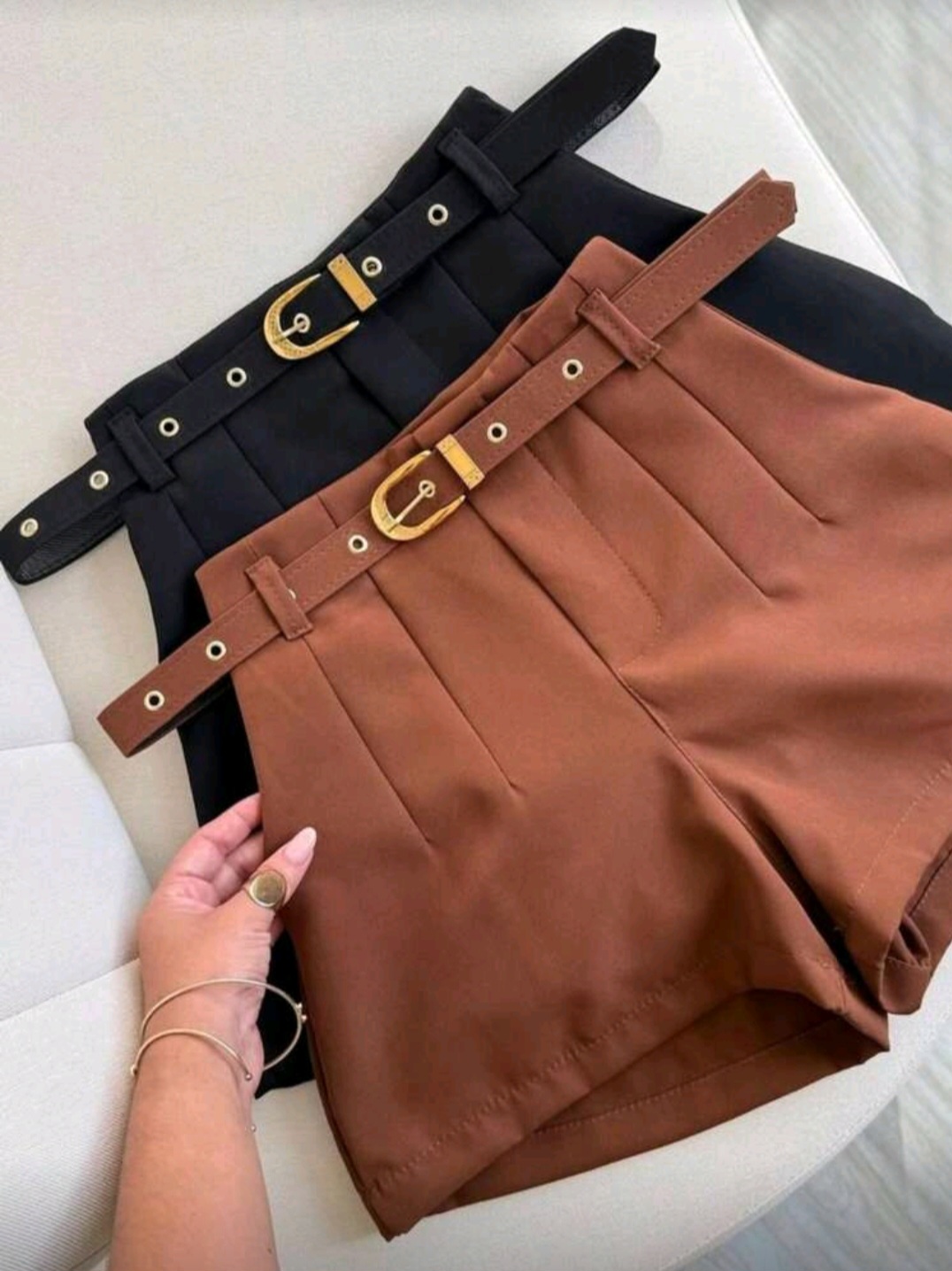 Short feminino alfaiataria com cinto emcapado e com bolso