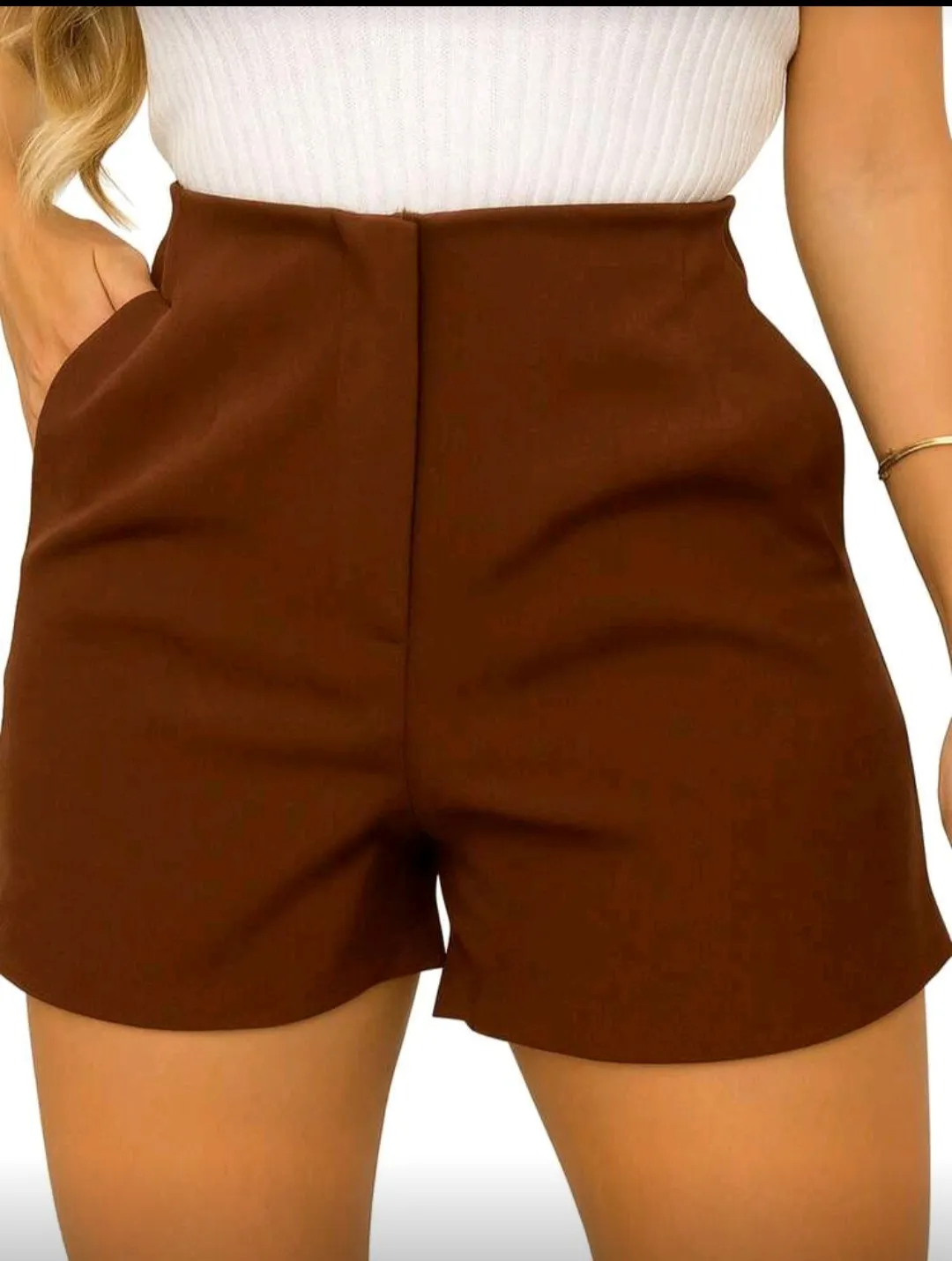 short alfaiataria cintura alta com zipe feminina