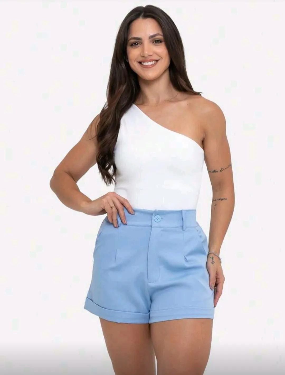 Shorts Feminino cintura alta com Elastico Alfaiataria