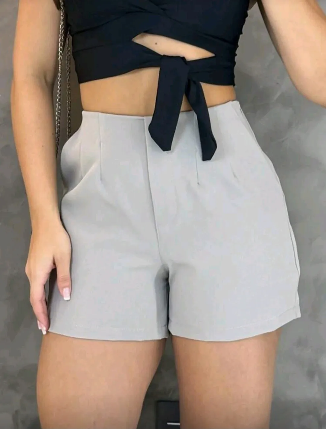 Short Alfaiataria Feminino Cintura Alta Tecido Confortável