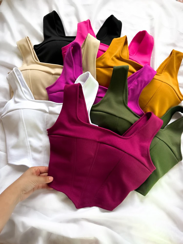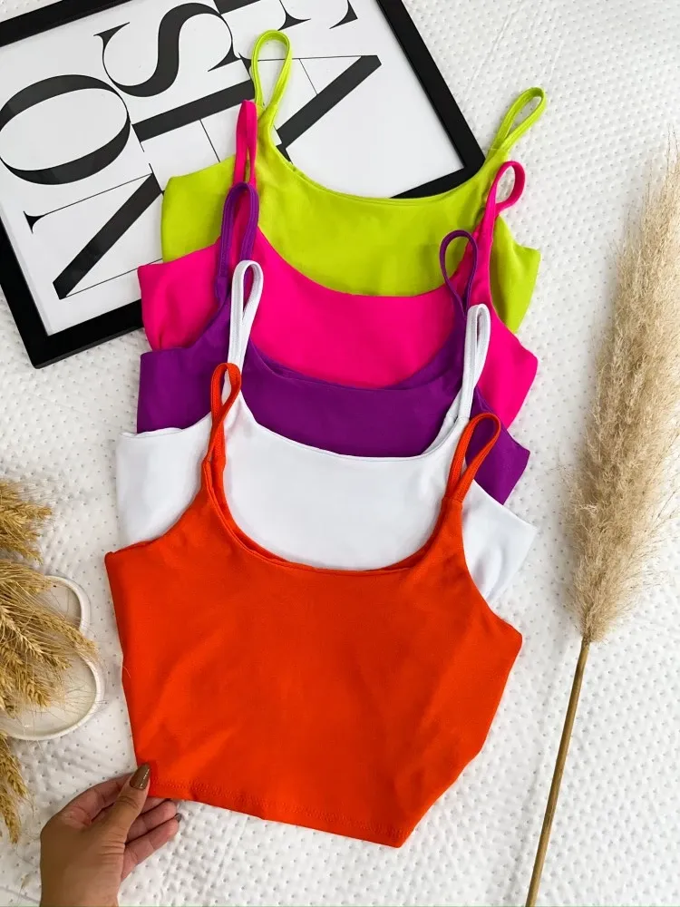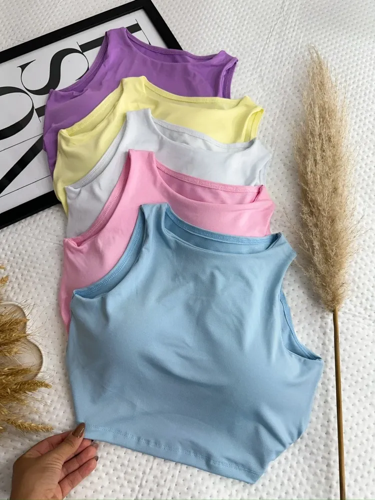 Blusa Feminina TOP cropped Simples básico Regata Regata Sólido malha canelada