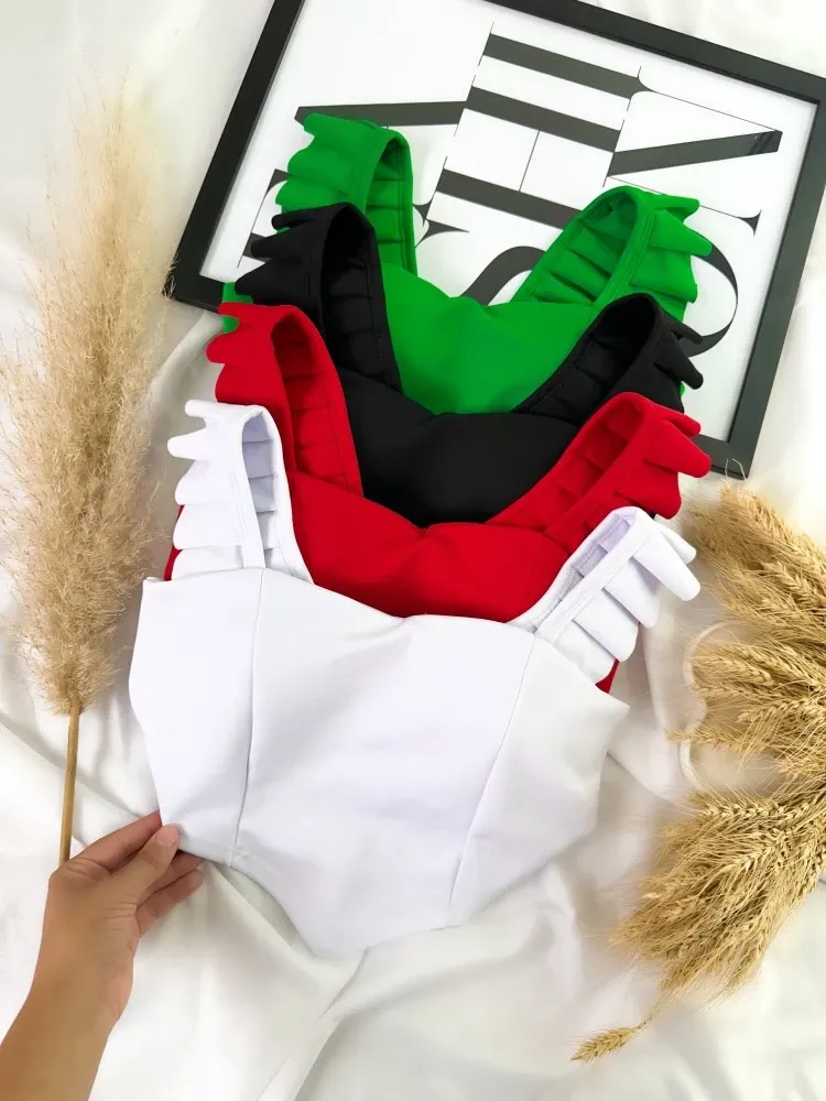 Top faixa e Croppeds De Alcinha Malha Canelado Ribanha Premium grosso