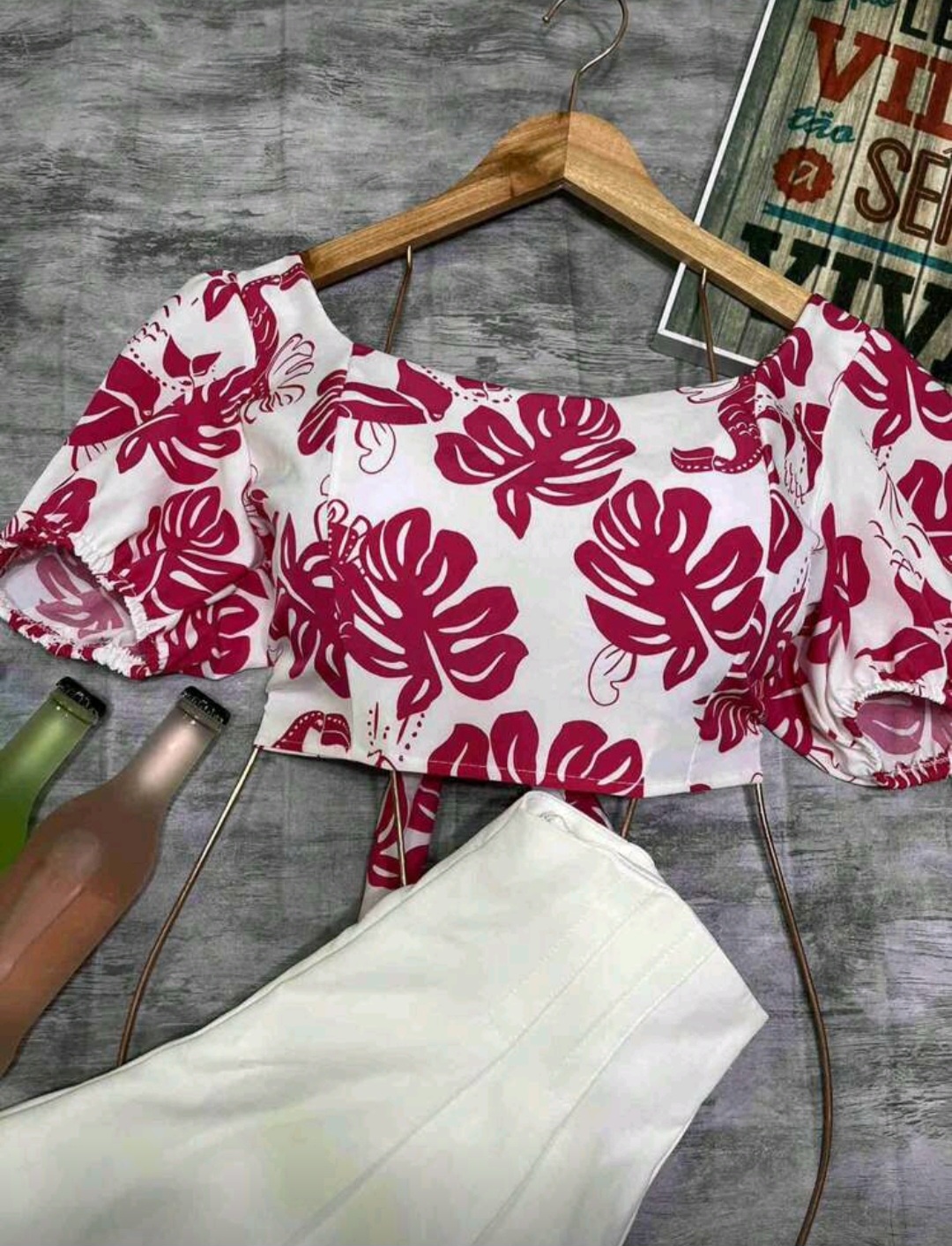 top estampado amarracao nas costas com bojo cropped