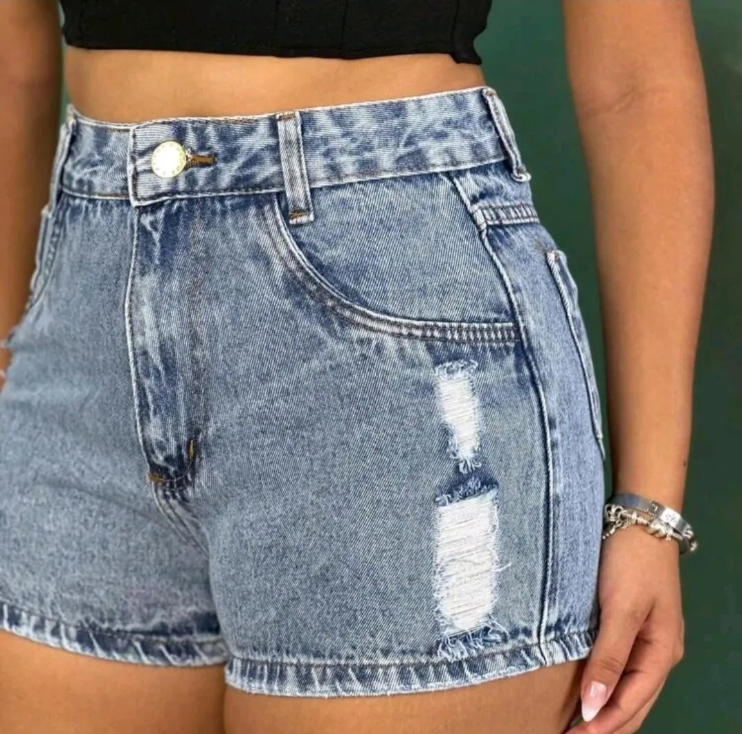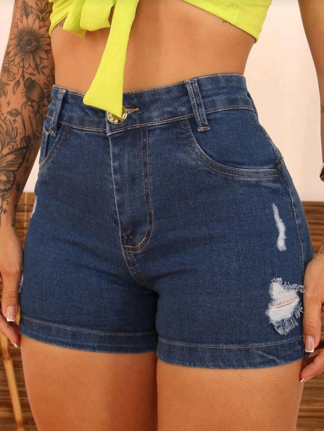 Short Jeans Feminino Com Lycra Levanta Bumbum Destroyed