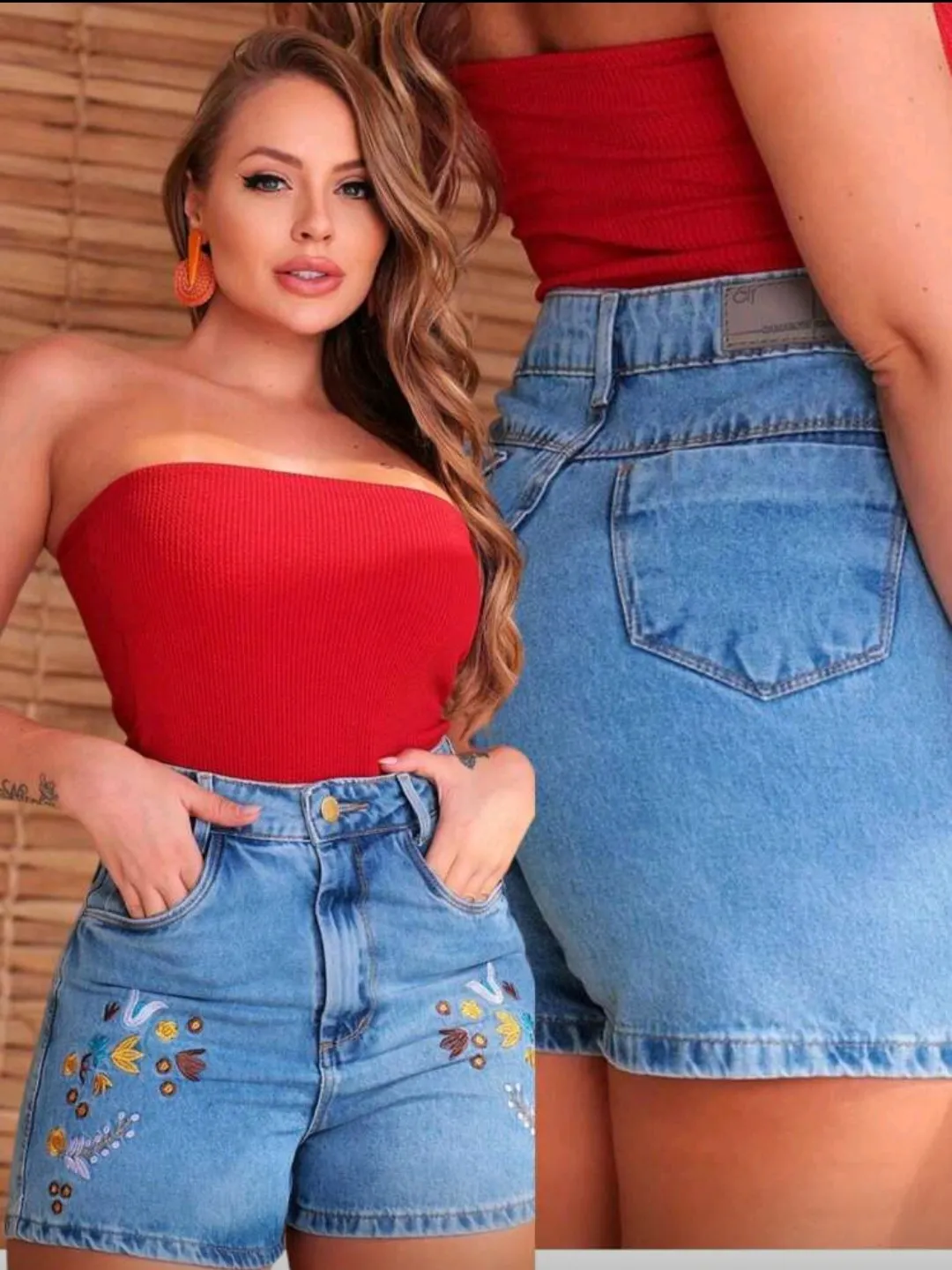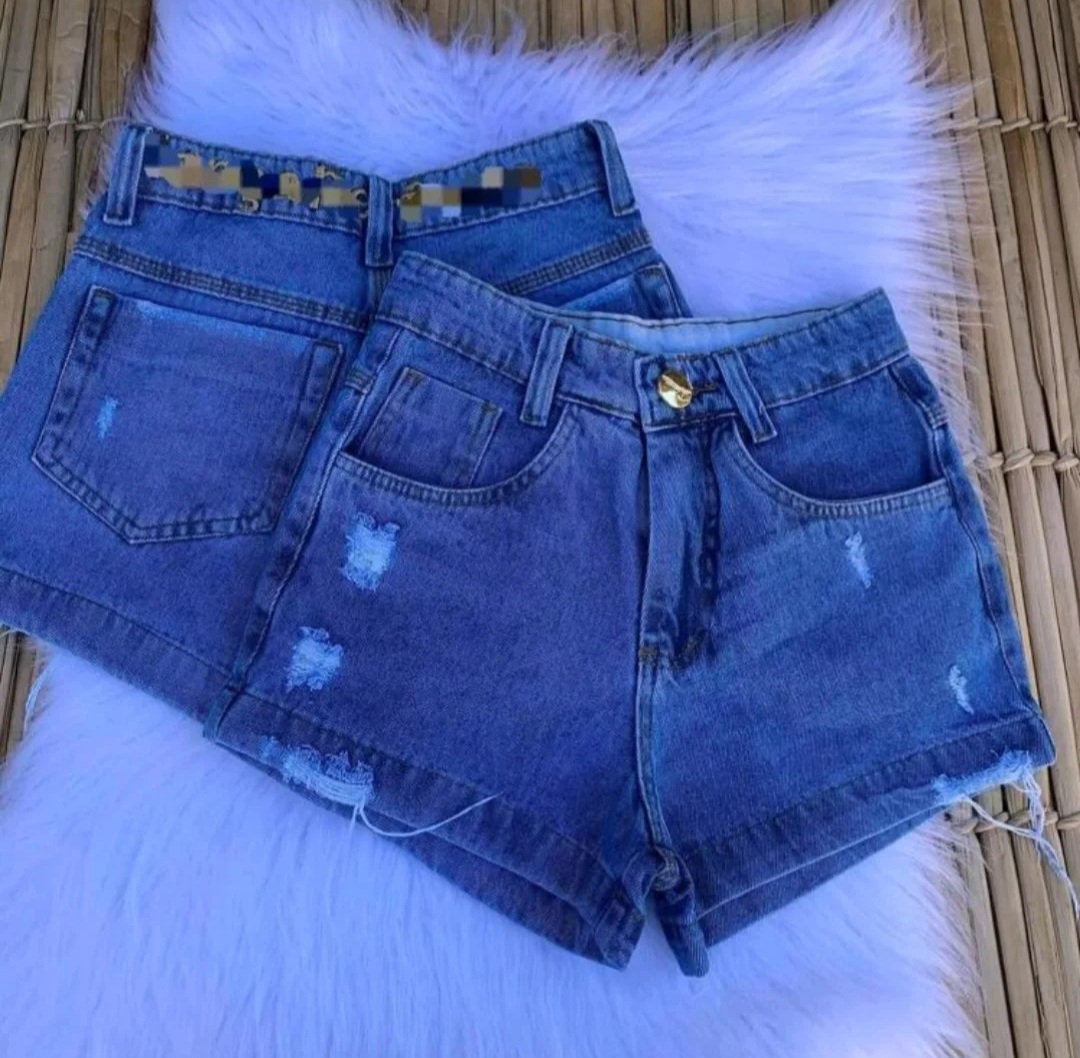 Shorts Denim Feminino Delave Cintura Alta Empina Bumbum Tecido Premium