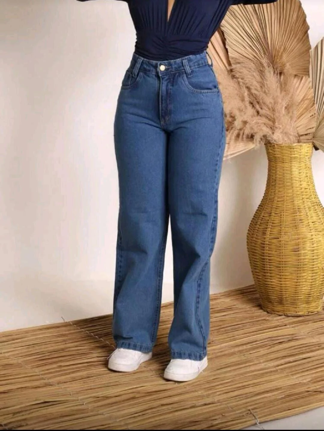 Calça Wide Leg Pantalona Jeans Feminina Cintura Alta Levanta Bumbum