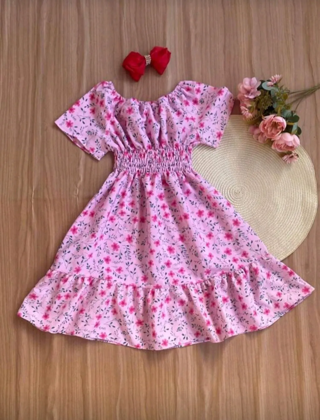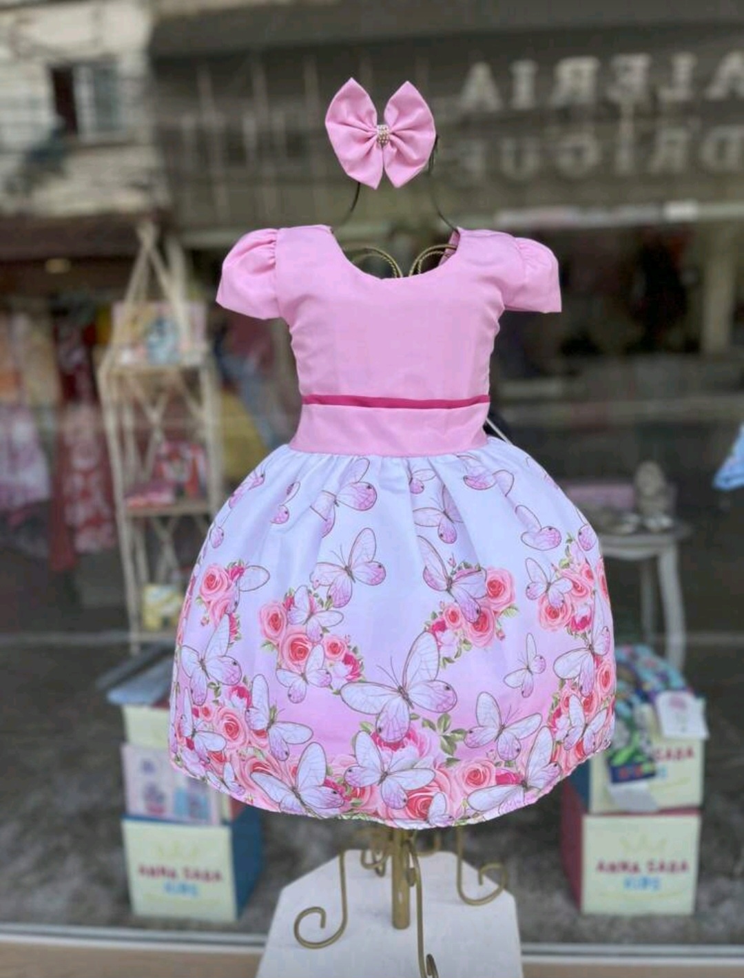 VESTIDO DE FESTA EVANGÉLICO FLORAL ROSA BORBOLETAS
