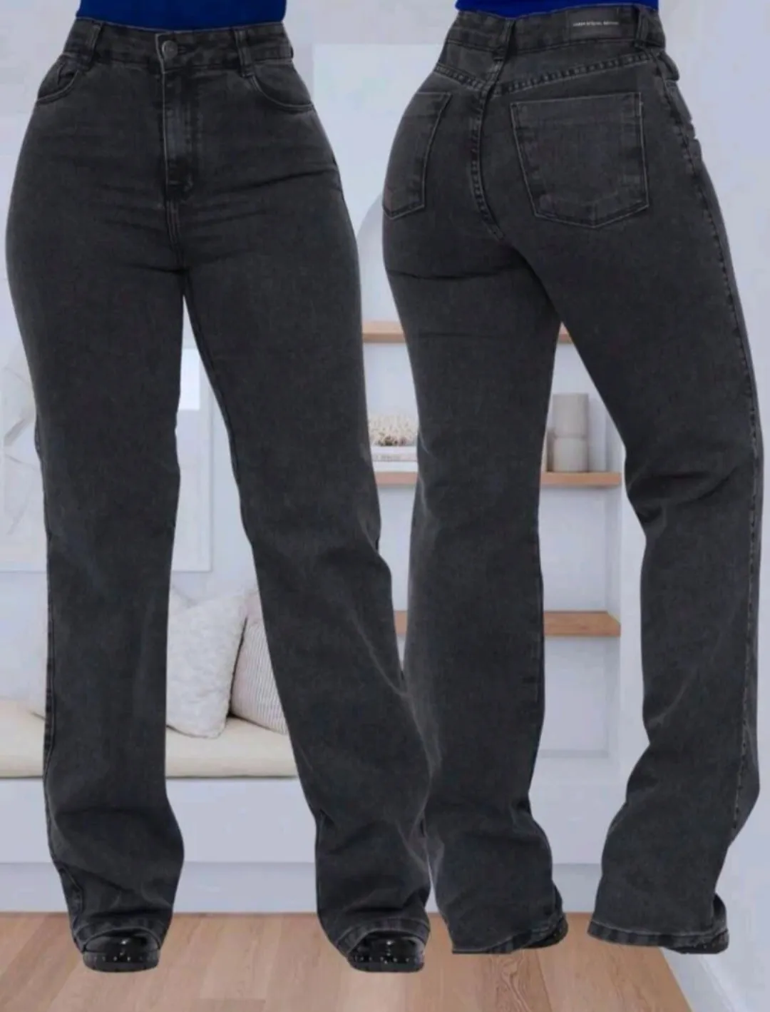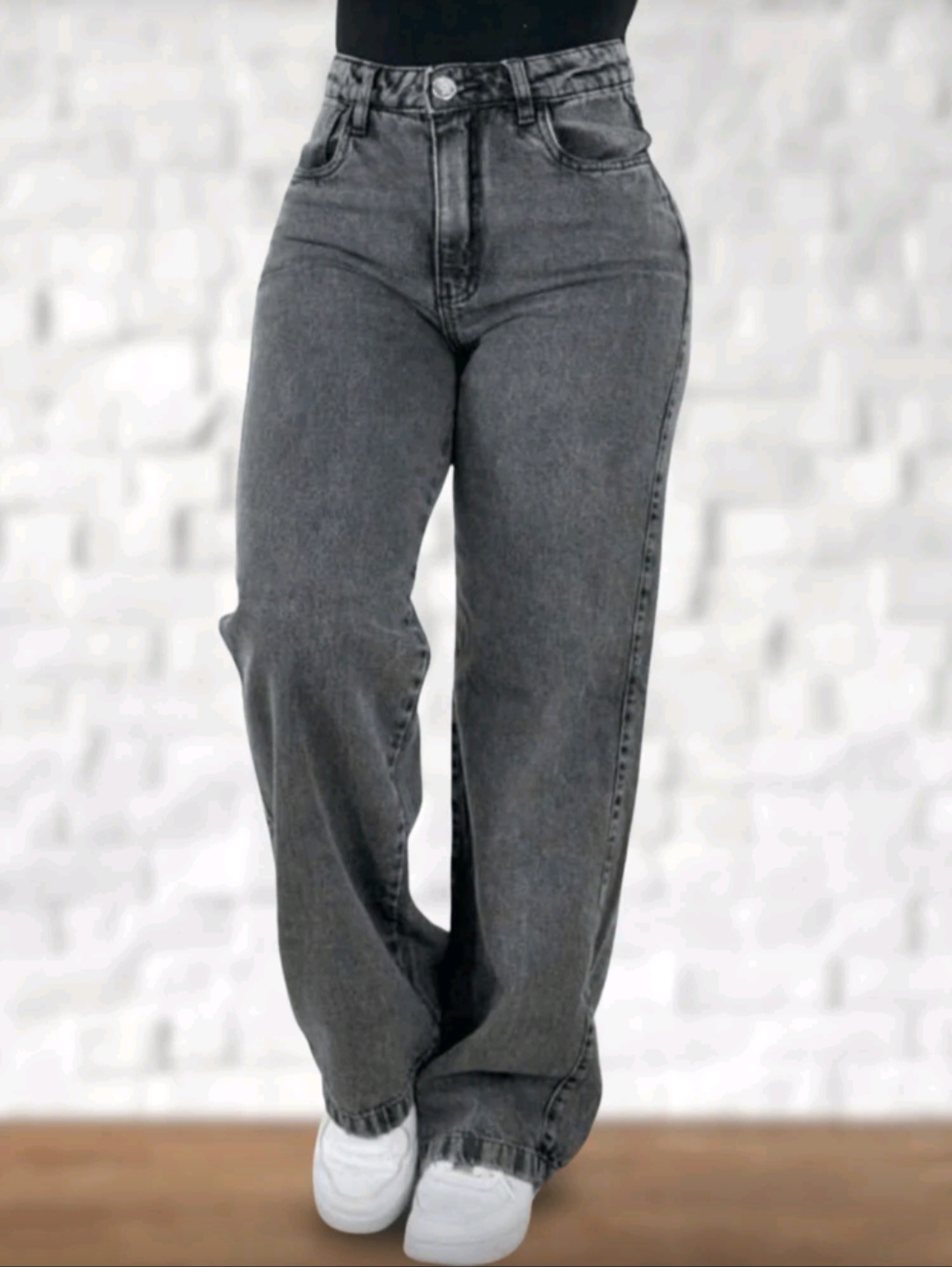 Calça Wide Leg Jeans Feminina Denim Levanta Bumbum Cós Alto tecido grosso premium