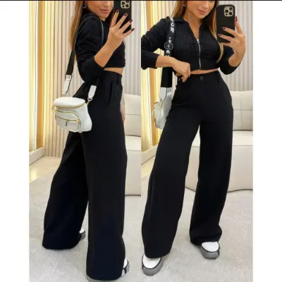 Calça pantalona alfaitaria feminina social cintura alta wid leg premium