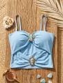 Top cropped com alças ajustáveis, caimento suave e tecido macio que não aperta. O grande destaque fica na fivela dourada frontal, conferindo charme moderno ao visual. Perfeito para looks do dia a dia, passeios ou com bikini por baixo. Versátil, combina com jeans, saias ou jaquetas leves. Confortável, não marca a pele e oferece boa elasticidade.