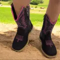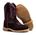 Bota Country feminina bordada rosa com cabedal macio e costuras reforçadas. Solado bege antiderrapante e palmilha acolchoada garantem conforto o dia inteiro. O bordado rosa dá um toque moderno ao estilo western, combinando bem com jeans, saias e vestidos.